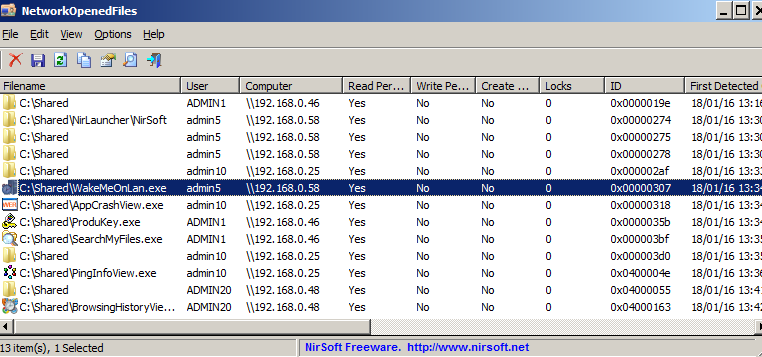 | 같은 인터넷을 활용하는 컴퓨터들에서 어떤 프로그램이나 파일을 활용하고 있는지 회사나 단체같은 곳의 관리자는 궁금할 경우가 많습니다. 네트워크에 연결되어 있다면 네트워크의 다른 사람들이 자신의 컴퓨터에서 무엇을하고 있는지 알고 싶어 할 것입니다. NetworkOpenedFiles는 네트워크의 다른 컴퓨터에서 열린 파일을 확인하는 데 도움이됩니다. 응용 프로그램은 열과 행으로 정보를 그룹화하는 사용자 인터페이스에서 열린 각 파일에 대한 몇 가지 세부 정보를 제공합니다. 열린 파일에 대한 자세한 내용은 다음과 같습니다. <알수 있는 내용> 파일 이름 파일 소유자 컴퓨터 이름 현재 컴퓨터를 사용하는 사람의 사용자 이름 권한 정보 읽기, 쓰기 및 작성 파일 속성 파일 크기 잠금 카운트 NetworkOpenedFiles는 이식 가능한 형식으로 작동하므로 설치할 필요가 없습니다. 실행 파일 만 실행하면됩니다. 그런 다음 열린 파일 목록을 표시하여 이미 언급 한 세부 정보를 제공합니다. 두 가지 표시 모드 중에서 선택할 수 있습니다. 모든 파일 표시 및 동일한 파일 이름 + 사용자 + 컴퓨터로 항목 병합. 첫 번째 모드는 열려있는 모든 파일 목록을받은 것과 동일한 방식으로 제공합니다. 그러나 두 번째 모드는 파일을 유사한 컴퓨터, 사용자 및 파일 이름과 병합합니다. "옵션"메뉴에서 원하는 디스플레이 모드를 변경하십시오. 전체 관리자 권한으로 컴퓨터를 실행중인 경우 소프트웨어를 사용하여 네트워크의 다른 컴퓨터에 연결할 수 있습니다. 연결 프로세스에는 "고급 옵션"의 몇 가지 간단한 단계가 필요합니다. 시스템 요구 사항 이 프로그램은 Windows XP의 모든 Windows 운영 체제와 호환됩니다. 그러나 Windows 7보다 오래된 운영 체제를 실행하는 시스템은 "컴퓨터"열에 정보를 표시하지 않습니다. 32 비트이든 64 비트이든 시스템과 호환되는 에디션을 다운로드해야합니다. 네트워크의 모든 컴퓨터에서 열려있는 모든 파일을 볼 수있는 소프트웨어 NetworkOpenedFiles 다운 http://www.nirsoft.net/utils/network_opened_files.html |